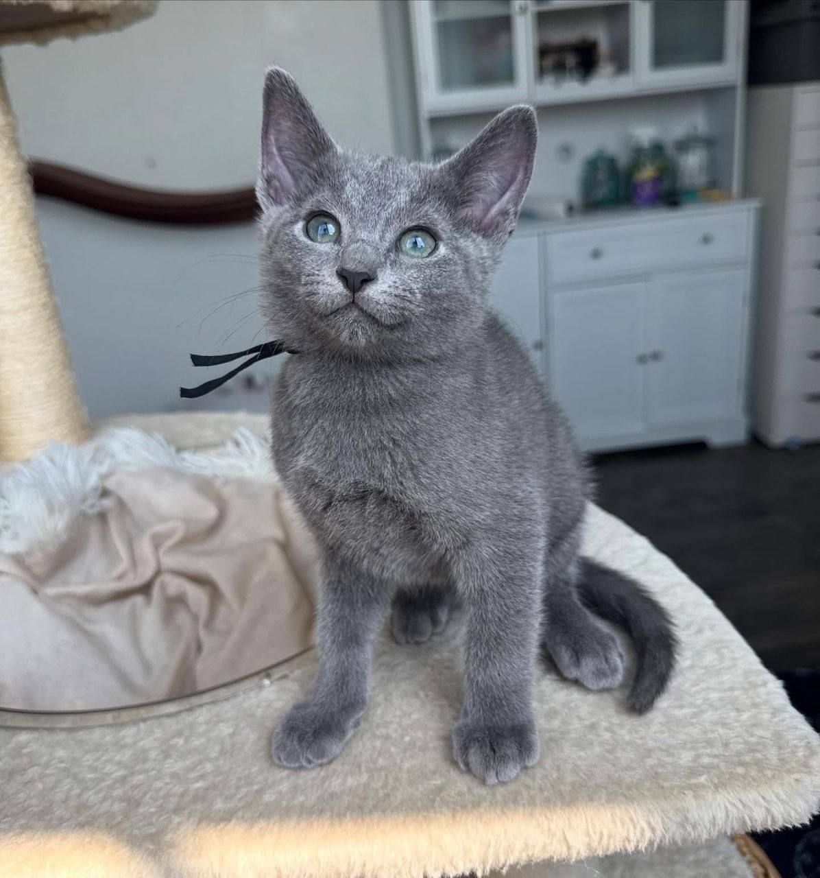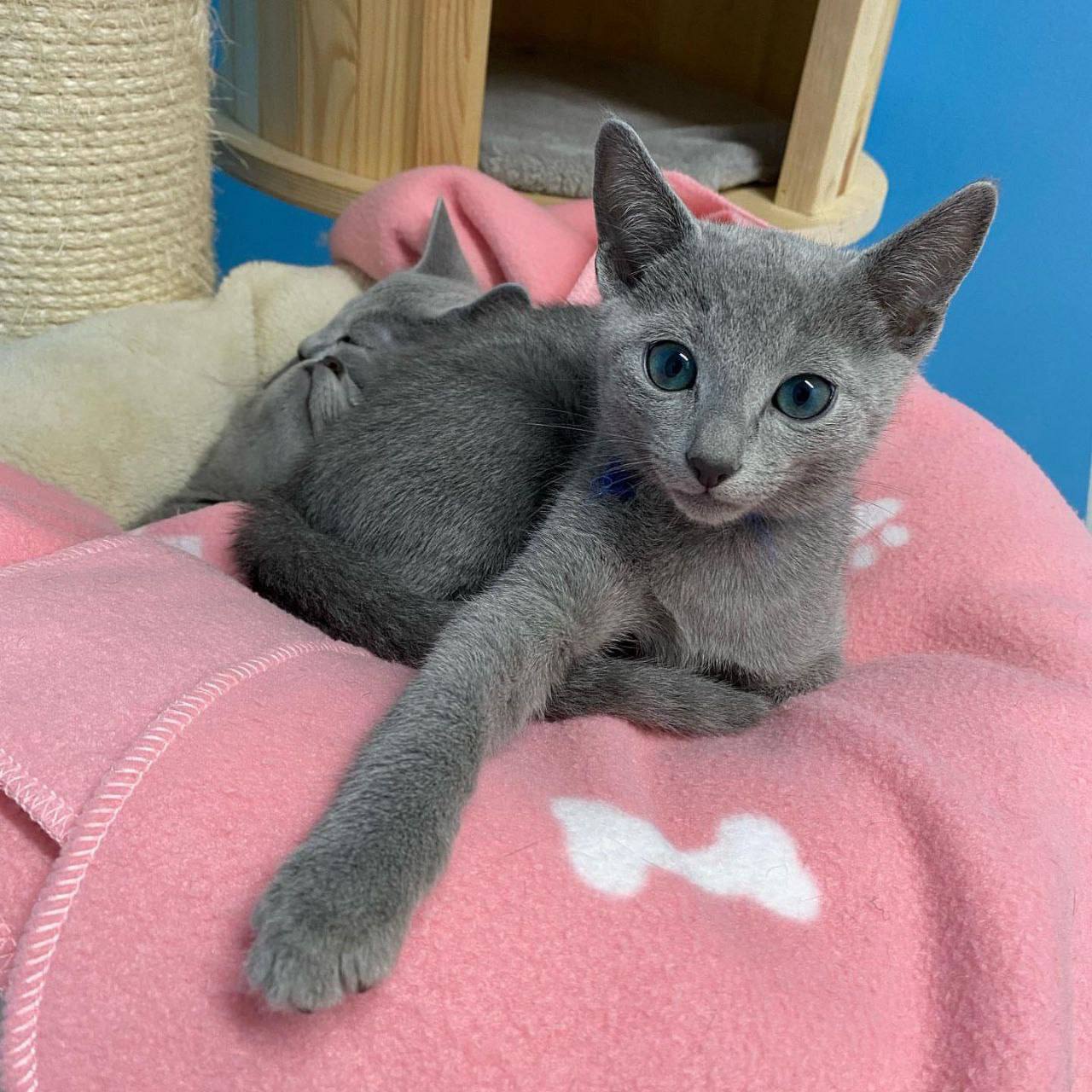 My two kittens flew in a few days ago. I took one glance and could not believe how gorgeous they both looked. The female is outstandingly beautiful and elegant. The male is so handsome and unique looking. Their looks are one of a kind. I have never seen such amazingly beautiful looking Russain kittens.